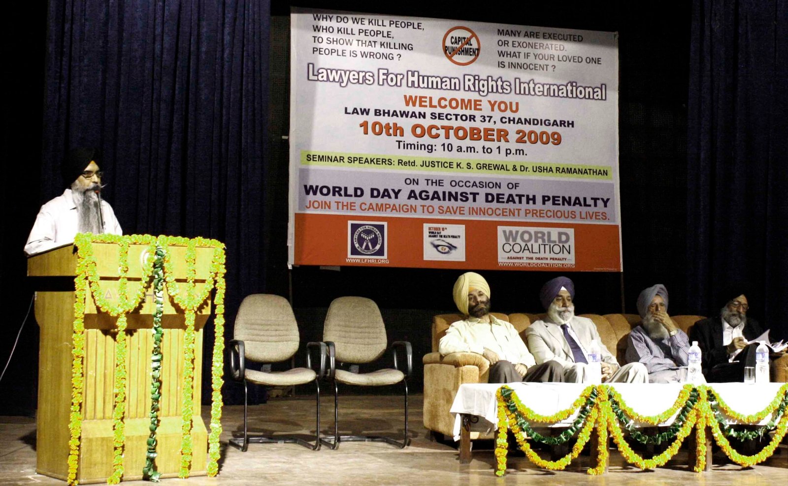 Navkiran Singh adressing in the seminar against death penalty10th of October was World day Against Death Penalty and Lawyers For Human Rights International after its election on the steering committee of World Coalition Against death Penalty organized a seminar and signature campaign for release of some of the worst victims of death Penalty. In the seminar Justice K.S Grewal, who recently retired from Punjab and Haryana High court and Dr. Usha Ramanathan an anti death penalty activist told in detail about the ill effects of the Death Penalty and also about its abuse worldwide. Navkiran Singh, Advocate, who is also the General Secretary of LFHRI, informed the gathering as to how LFHRI and he himself have worked since last 3 years to ensure justice to the victims of Death Penalty.